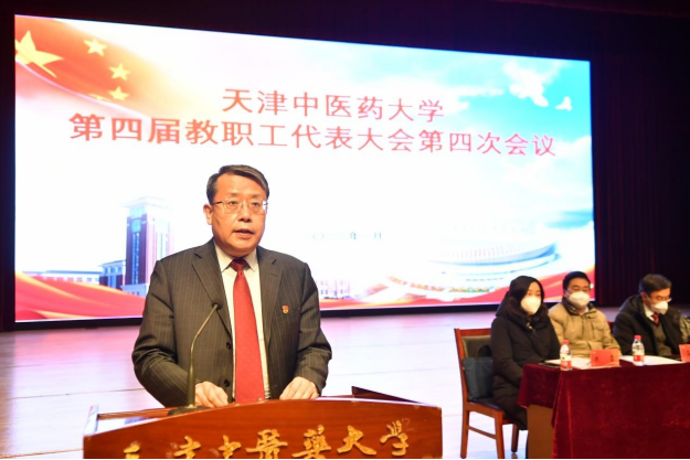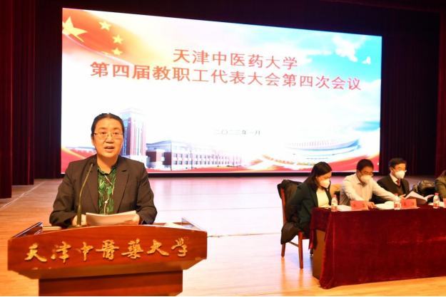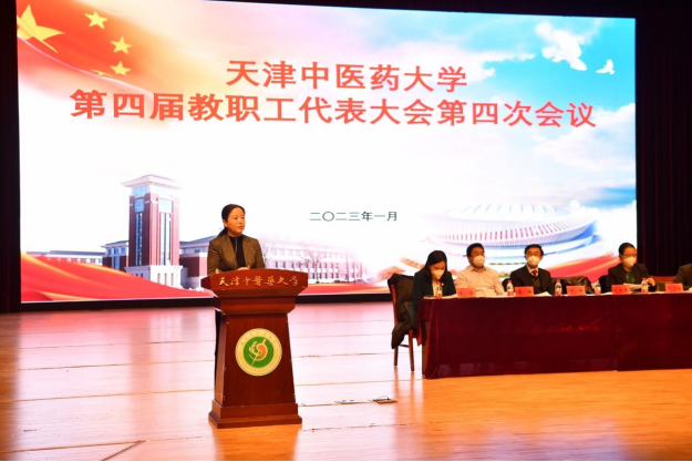 2023年1月16日下午,天津中医药大学第四届教职工代表大会第四次会议在大学生活动中心报告厅召开,会议听取了校长高秀梅同志的《天津中医药大学2022年工作报告》,审阅了《天津中医药大学2022年工会工作报告》,校党委书记刘革生同志讲话。校领导班子成员,大学一、二附院、各二级分会教职工代表,全体中层干部等300余人参会。会议由党委副书记、工会主席刘怡蔓同志主持。 会上,校长高秀梅同志回顾了过去一年工作,总结了学校主抓的四件大事:“第一是,发扬历史主动精神,有效破解瓶颈难题,提振事业发展信心,校园基本建设多点开工,行疾步稳;第二是,创新第一动力充分激活,科学研究和转化服务再上新台阶;第三是,教育教学内涵工程不断深化,人才培养全面提质增效;第四是,坚持以师生为中心的发展理念,立德树人,统筹疫情防控和事业高质量发展”。 校长高秀梅同志从八个方面汇报了2022年学校取得的主要成绩。“扎实开展党的二十大精神和市第十二次党代会精神学习宣传贯彻;以一流学科为引领,推动相关学科建设;以人才工作会议为新起点,厚植人才强校第一资源;以中医药对外教育为特色,积极推进国际教育交流与合作;以人民生命健康为使命,持续提升大学医院服务水平;以特色文化品牌为牵引,扎实推进中医药文化传承创新与传播;推进治理能力现代化,完善服务保障体系;强化全年预算,保障事业发展”。 同时,高秀梅校长在肯定成绩的同时,提醒大家要清醒的认识到工作中还存在许多不足,面临不少困难和挑战,并对2023年的工作进行了安排部署,提出了全年十方面的重点工作。会议期间,参会代表对《天津中医药大学2022年工作报告》进行了分团讨论、提出了意见和建议。 校党委书记刘革生同志在讲话中指出,“回首2022,这一年实属不易、极不平凡。疫情千磨百折,风雨中的校园值守,清晨的核酸大筛,隔离中的守望相助”。刘革生书记代表校党委,向广大党员干部、师生员工表示衷心的感谢! 刘革生书记在展望2023年工作中强调“今年是全面落实党的二十大精神开局之年,是“十四五”规划承上启下攻坚之年,也是正值我校建校65周年,是学校事业发展的重要时期,提升质量、强化内涵、凝练特色成为学校在日益激烈竞争中图生存、谋发展的关键所在。新形势新任务新要求需要全校上下同心同德、群策群力、励精图治、奋发有为地推动学校实现更高质量发展”。 会上,刘革生书记就如何抓好2023年工作提出三点意见:一、要深刻领悟“两个确立”的决定性意义,聚焦“国之大者”,把党的二十大决策部署全面落实到学校各项工作中去,把学习宣传贯彻党的二十大精神作为当前和今后一段时间的首要政治任务。二、要重点突破、精准发力,在高质量发展上有新突破。要坚定不移全面加强党的建设,要坚定不移实施内涵攻坚,要坚定不移推行改革创新,要坚定不移突出“干字当头,实字为先”。三、要强化自身建设,画好同心圆,不断提高民主管理水平。刘革生书记指出“教代会是保障学校教职工依法行使民主权利、参与民主管理、进行民主监督、完善管理体制的基本途径和有效形式。教代会和工会组织,要不断加强自身建设,规范工作制度和运行机制,提升民主管理水平。要将解决好全体教职工最关心、最直接、最现实的问题作为服务广大教职工的根本任务,积极为教职工做好事、办实事、解难事。要教师有更多的归属感、成就感、幸福感,要让学校逐步成为平安学校、学术学校、和谐学校、文化学校、幸福学校”。 最后,刘革生书记号召,“大鹏之动,非一羽之轻;骐骥之速,非一足之力”,要全校上下、各个方面同心协力,要全校师生员工心往一处想、劲往一处使,让我们更加紧密地团结在以习近平同志为核心的党中央周围,坚持以习近平新时代中国特色社会主义思想为指导,始终保持不畏艰难的闯劲、持之以恒的韧劲和决战决胜的拼劲,以“止于至善启新程”的勇毅和“快马加鞭勇争先”的豪迈,发扬“求真务实,甘于奉献;勇于担当,善作善成;守正创新,追求卓越”的天中精神,踔厉奋发,勇毅前行,担当作为,以实际行动贯彻落实党的二十大精神,奋进新征程建功新时代!