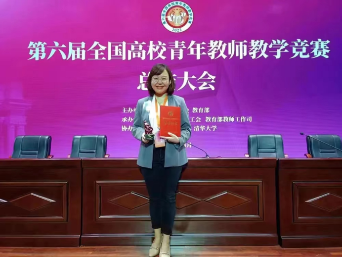 在教与学的过程中,她亦发现教学能力、教学方法等的欠缺。于是,她从2019年开始参加各级教学竞赛,旨在以赛促教,提升教学能力。4年以来坚持不懈,相继收获了院、校、天津市青教赛医科组第一名的好成绩,更因此获得参加全国青教赛的机会。然而,在紧迫时间内,高质量完成16套教学设计、PPT以及讲稿,让她压力巨大。不仅如此,备赛过程中,她更深刻体会自身在教学理念、方法、思政融入等多方面的欠缺及不足。非常庆幸的,整个比赛过程有来自于校党委、工会,院党委、教学处及整个儿科教学团队的指导和支撑。在2个半月的攻坚备赛中,在12次集训打磨下,在平均睡眠不足5小时的每一天,课程的“高阶性、创新性、挑战度”不断加强,中医经典传承和创新不断体现,儿科学特殊的人文关怀及课程的价值内容不断融入,教姿教态也不断完美。终于,在2023年4月第六届全国青教赛决赛中,她荣获医科组一等奖的好成绩。